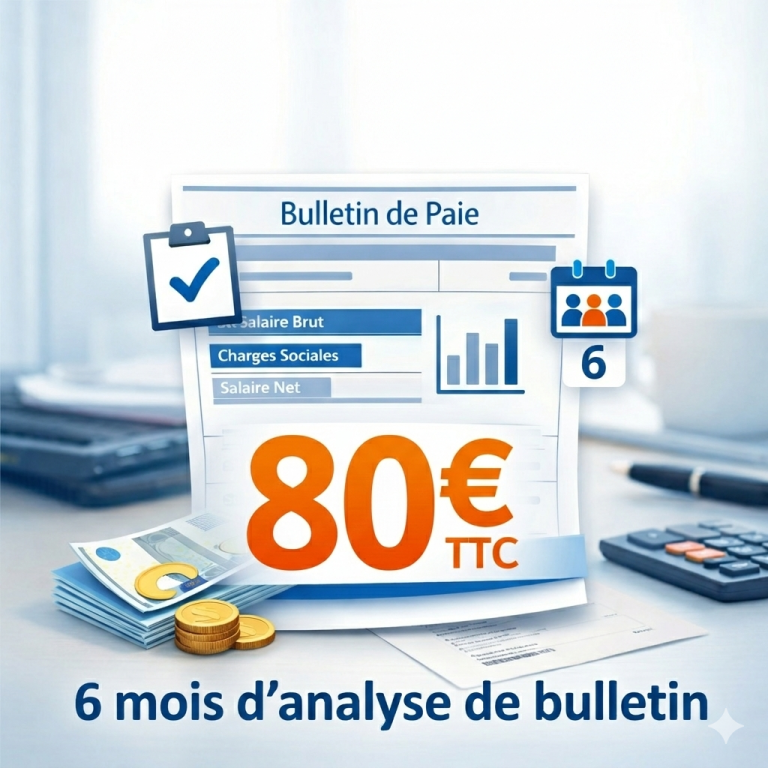 Nous analysons ligne par ligne vos 6 bulletins : salaire, primes, cotisations, heures supplémentaires et indemnités.