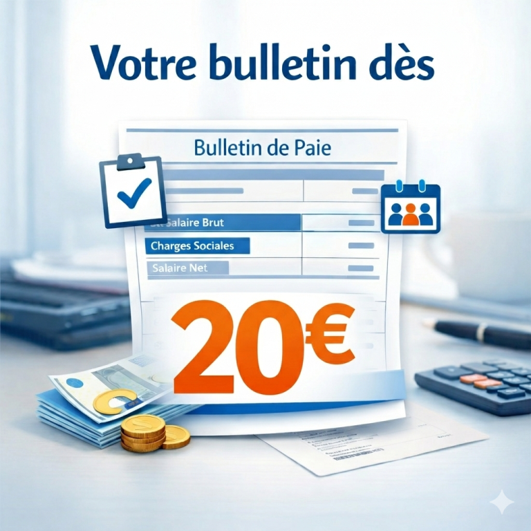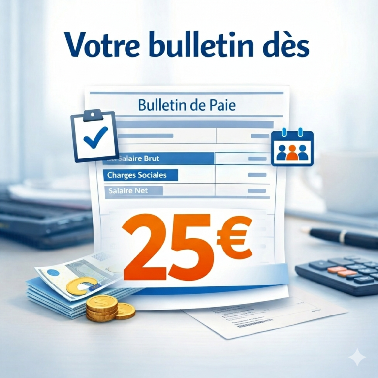 Nous configurons entièrement votre paie : bulletins conformes, prise en compte des primes, heures supplémentaires et avantages, déclarations aux organismes sociaux, gestion des complémentaires santé et prévoyance, et suivi des droits de vos salariés. Démarrage rapide, fiable et sans frais supplémentaires.